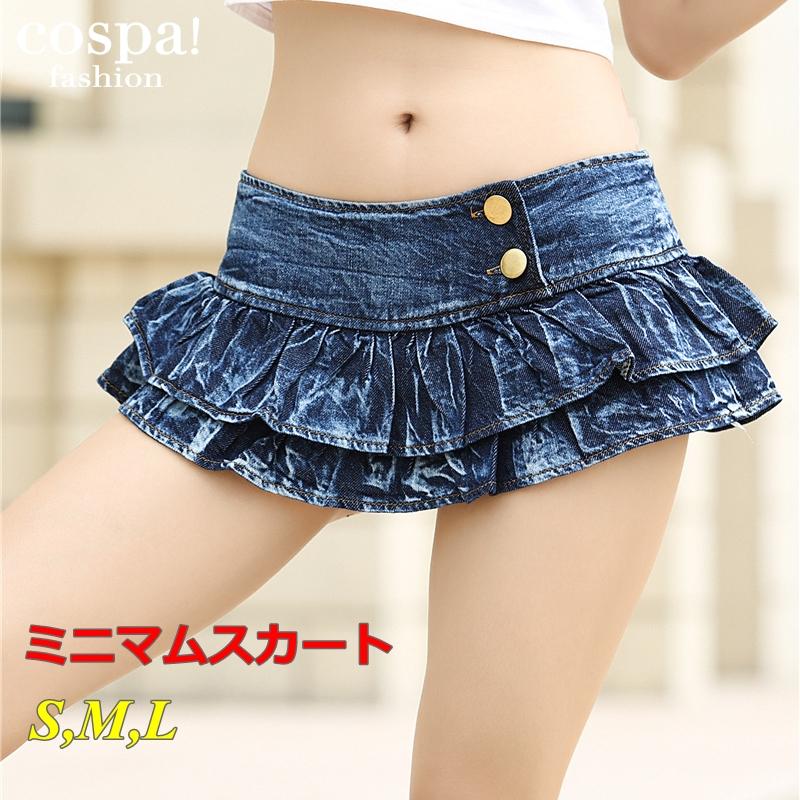 ミニスカート 超ミニ デニム ジーンズ スーパーミニ ウルトラミニ ミニマム 韓国 フリル かわいい Cospa Fashion